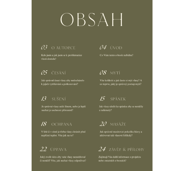 Tento e-book Vám nabídne necelých 30 stran textu týkajícího se vlasové problematiky a věřím, že po jeho přečtení budete o tématu péče o vlasy vědět vše!