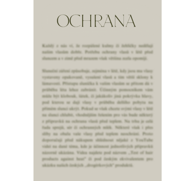 Víte, jak si vlasy správně mýt, česat či sušit? Většina z nás při těchto základních krocích postupuje kompletně špatně! Tento e-book Vás však naučí, jak krok po kroku postupovat, aby Vaší neznalostí nedocházelo k neúmyslnému poškozování Vašich vlasů. Tyto postupy jsou navíc založeny pouze na změně Vašich rutinních postupů a jsou tedy zcela zdarma. Můžete se těšit na představení již zmíněných postupů česání, mytí i sušení vlasů. Dále Vám prozradím, jak vlasy chránit před poškozením ve spánku či před nepřízní počasí. V neposlední řadě se s Vámi podělím o můj tajný tip podporující růst vlasů a v závěru se podíváme na to, jak vlasy upravovat aby nedocházelo k jejich poškození, ale zároveň byly vaší korunou krásy.